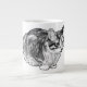 Uma tábua compacta de emalhar repousa com olhos brilhantes, escutando enquanto um campo suave de pequenos pontos adiciona um toque artesanal. O humor é quente e acinzentado, perfeito ao lado do cacau e dos caróis. Uma caneca de Natal emocionada para quem ama companhia felina silenciosa.