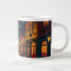 Tema de Natal Linda e velha cidade da Bélgica Grande Mug de Café Vivid cores brilhantes de vermelhos, azuis, amarelos e verdes para mostrar o clima de natal.