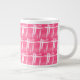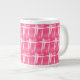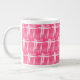 Caneca jumbo apresentando um design feito de traços brancos a rosa.