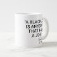 Uma grande caneca com a mensagem "Um trabalho negro é qualquer pessoa que tem um emprego" para zombar da explicação de Trump para dizer que os imigrantes estão tomando os empregos negros. O conteúdo textual e a cor podem ser personalizados.