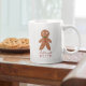 Uma caneca do tema das férias de Natal bonitinha com a ilustração de um biscoito de pão de gengibre com um texto engraçado abaixo que diz "o Vamos é cozido".