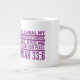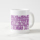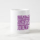 Jumbo Alguns dias, uma xícara de joe de tamanho normal simplesmente não vai funcionar. Quando precisar de uma dose extra de cafeína, pegue a sua caneca de café extragrande de Zazzle. Vai acomodar um cheio de 20 onças de Venti. Perfeito para sopa, cereal, sorvete ou chili também! Esta caneca gigante apresenta uma alça em forma de C para um corte confortável. Dimensões: Altura: 4,5" Diâmetro: 3,9" Capacidade: 20 onças de micro-ondas e lava-louças Forte, de cerâmica Cumpre ou excede os requisitos do FDA para a segurança das comidas e bebidas Impressos a pedido em Reno, NV Designer Dica: Para garantir o impressão de mais alta qualidade, note que a área de design personalizável deste produto mede 4" alto x 10,5"