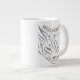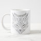 Uma grande caneca com uma ilustração artística da cabeça de um lobo e um texto dizendo "WOLVERINE". Embora o design esteja todo em cinzas, você pode mudar a cor do lobo e de cada olho, assim como o conteúdo textual e a cor e a fonte em Editar usando a Ferramenta Design.