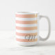 Esta caneca fofa, girada, monificada apresenta um padrão striped moderno em gradiente rosa e pêssego e um monograma personalizável em uma fonte bonito de cinza.