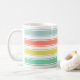 Ponha seu café ou chá em uma manhã de verão ensolarada com nossa caneca de estrias de cabana em tons de neon desbotados e lavados pelo sol de aqua, coral, chartreuse e menta. Adicionar um nome, monograma ou frase em letras brancas na faixa inferior, se desejado.