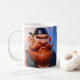 This image features a caricature of a burly, square-jawed biker with a gigantic beard and oversized mustache, caught in an exaggeratedly serious expression. The lighting creates a warm-cool contrast, highlighting the smooth porcelain-like texture of the design, as if sculpted with finesse. In a bold and playful comic style, it evokes a rugged charm like a Sunday ride through a desert highway. It conveys a mix of humor and intensity, perfect for gifting, morning coffee rituals, or decorating a man cave with a dose of fun attitude. A standout piece for a cool, offbeat vibe in any season.