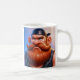 Image biker caricature in bold humorous style, ideal for gift mug or man cave decoration.