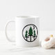 Start your morning with the spirit of adventure! This minimalist geometric design features a serene pine forest under a crescent moon, captured in a clean circular badge. Perfect for nature lovers, hikers, and camping enthusiasts who enjoy their coffee with a view. A great gift for anyone who feels at home in the great outdoors.