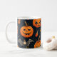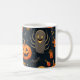 Esta é uma caneca de café que representa a imagem do Dia das Bruxas.