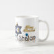 Ilustração de caneca Chanukkah Shalom com texto 3D e Estrela Azul e Dourada de David: Shalom, fé judaica.