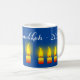 Simbolize o Milagre de Chanucá: Nossa design mostra as nove velas, simbolizando o milagre de Chanucá. As chamas brilhantes contra o azul real profundo são uma representação visual da alegria e luz que este feriado traz. Oito velas simbolizam o número de dias que a lanterna do Templo apagou; a nona, a xamash, é uma vela auxiliar usada para acender as outras. Personalize a caneca com o ano atual.
