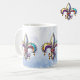 Escolha de estilos de caneca, incluindo vidro. Cor de dentro personalizável para outros estilos. Fleur de Lis com pedra decorativa no centro em nuvem azul transparente.