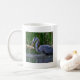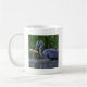 Um Herão Azul Excelente, saltando na água, depois de perder um peixe.