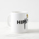 Uma caneca divertida para pessoas que fizeram a prótese da anca. Imagem estilizada da articulação da anca atrás da grande palavra ousada, "HIPSTER". Diz às pessoas que você ainda está "com ele" agora que você é biônico.