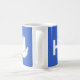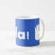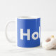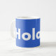 O fundo azul famoso com o "Hola" imprimiu no branco & na mão de ondulação no lado.