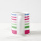 Enjoy your daily dose of caffeine in this cheerful stripe mug. By artist Becky Volk