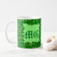 Mug in Shades of emerald green holly com bagas vermelhas formando um monograma personalizável com fundo verde claro