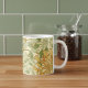 A floral coffee mug featuring the lush beauty of nature, adorned with the Honeysuckle pattern (c.1885) by British artist William Morris (1834–1896) of the Arts and Crafts movement. Morris masterfully captures the essence of honeysuckle in intricate detail, with rich green foliage gracefully entwined with vibrant orange blossoms, creating a harmonious and captivating display.