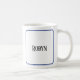 Esta é a caneca perfeita para um bebedor de chá: Hora do chá. A tipografia é enfatizada por ser contida num quadrado azul com bordas arredondadas, e decorada com uma xícara de chá em azul correspondente. Você pode personalizar o outro lado da caneca com seu nome. O estilo é simples, moderno e divertido.