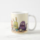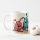 Cinco adoráveis monstros peludos de diferentes cores se reúnem em torno de uma mesa de chá. Cada criatura tem características únicas, como antenas, caudas ou ouvidos, e todas vestem expressões amigáveis. A cena é encantadora e balbuciosa, representando uma festa de chá de monstro.