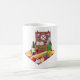 Uma cena piquenique com comida e uma cesta em um tapete. Esta design parece realmente eficaz nestas Mug