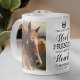Uma caneca fotográfica memorial equestre, com 2 fotos tesouradas do seu querido cavalo, uma ferradura com um coração centrado, uma doce citação da lembrança de cavalo que diz: "Você deixou sua impressão para sempre no meu coração", mais seu nome, e datas.