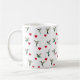 Cute Valentine Day's mug featuring hand-painted Ruby-throated Hummingbirds carrying hearts.