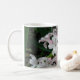 Esta caneca bonito apresenta uma bela foto de perto de um grupo de lindas flores brancas de Hyacinth. Cada flor é branca no dentro e tingida com uma bonito cor rosa pálida no exterior. A design é mostrada aqui numa caneca de café branca básica, mas também está disponível numa gama de diferentes cores e estilos de canecas, incluindo uma linda caneca de vidro fosco.