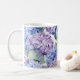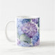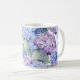 Esta caneca de café cerâmica é mostrada com um adorável impressão floral de hydrangea multicolor. Personalize este item ou comprar como está. Imagem licenciada