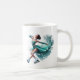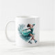 This ceramic coffee mug is shown with a sports ice skater art print.
