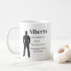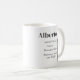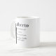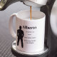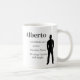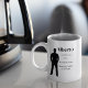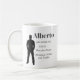 The Identity Defined coffee mug features a charcoal masculine silhouette in a strong upright stance on a white base. A bold serif name, pronunciation, and definition align to the right, balancing strength and meaning. The design reflects confidence, clarity, and refined identity.