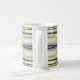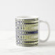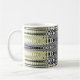 Arte fractal abstrato que me lembra ilusões óticas. Esta caneca única apresenta círculos e ondas em branco, azul e caqui.