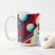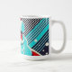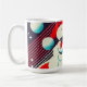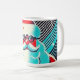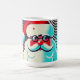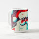 A ilustração do Papai Noel entoante contra um fundo vermelho e azul ousado, incorporando a magia da época de férias.