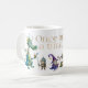 Essa caneca de bebida encantadora apresenta um tema clássico de histórias de folclore e conto de fadas. A ilustração apresenta uma princesa e um príncipe sapo à direita, com um rei e seu castelo à distância. Um dragão e cavaleiro jovem em armadura brilhante são fotografados à esquerda, com um pequeno feiticeiro entre eles. A frase "Uma vez por vez" é impressa entre as ilustrações em uma fonte de ouro branco.