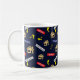 Caneca divertida impressa com um padrão de casas, chaves, para venda, para deixar e vender. Sobre um fundo azul escuro. Para Agentes Imobiliários, Agentes Imobiliários e Funcionarios de arrendamento. Mais presentes do Real Estate Agent disponíveis em nossa loja TwistersDesign.