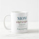 Essa caneca de café diz: "Mãe, você não é nada menos que incrível. É desenhado com tons bonito pastéis e adoráveis flores amadas por mulheres.