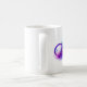 Símbolo infinito com uma bela pena pintada em cores roxas e azuis brilhantes sobre fundo branco.