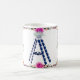 Letra Inicial A feita com imagens de Gemas de Sapphires em Pedra Retangular, Corte de pera e Marquesa, dentro do centro trapezoide cortado e rico cortado Diamantes no grande apfleto marquesa, acentuado com uma flor branca no Topo da letra A. Sapphire é a pedra de origem de setembro. Azul é a cor da garganta Chakra.