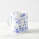 Caneca De Café inicial azul da porcelana da flor branca