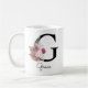 Caneca De Café Inicial G Floral Boho Rosa Monogramada