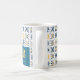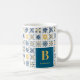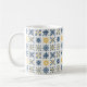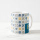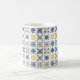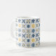A Mediterranean Tile-Style Pattern Featuring Nine Floral and Geometric Designs in Navy Blue, Yellow, and White Coffee Mugs with Name and Initial.