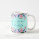 Uma bonito combinação de cores pastel e flores femininas. Esta caneca inspiradora de café diz "reze, espere, e não se preocupe".