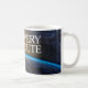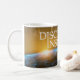 Apoie a liberdade acadêmica, a pesquisa científica e o design inteligente com esta linda caneca, com um logotipo para o Instituto de Descoberta contra uma imagem de fundo de satélite do nascer do sol e do planeta Terra.
