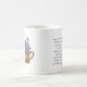 Uma caneca bonita desenhada à mão com flores que não me esqueçam com um pássaro bonito ao lado da Escritura de bíblia Isaiah 49:15-16. Presente perfeito para dia de as mães, melhor amigo, irmã, dama de honra, etc. Design criado por Lavanda Mint Graphics.
