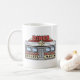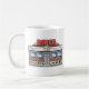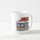 Dinheiro de vintagem retrorclássico com hambúrgueres e maltes. Relógio sob o sinal. Vermelho, prata, cinzas, preto, branco, azul claro e amarelo pálido. Você pode mudar o plano de fundo para qualquer cor.