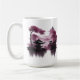 Digitale Aquarellkunst in eleganten Violett- und Schwarztönen: Eine japanische Landschaft mit Pagoden, Bäumen und Spiegelungen am See. Das Bild vereint Ruhe, Harmonie und fernöstliche Ästhetik in einem modernen Kunstwerk.