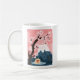 Caneca de café com desenho animado, inspirado no Japão, com macaco-neve, flores de cereja e Monte Fuji.