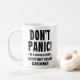 Esta deliciosa caneca branca apresenta a frase "Não entre em pânico! Sou um Jardineiro Chefe Assistente Profissional. Perfeito para quem cultiva a beleza em jardins e paisagens, essa caneca é um companheiro ideal para uso no escritório ou como presente pensativo para aniversários e promoções dentro do campo horticultural.