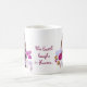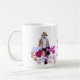 Esta caneca lunática, artística caracteriza um jardineiro mystical da flor perdido em suas dálias. É vestido nas máscaras do marrom, o ouro, o branco e o tan e esportes um chapéu para a máscara, uma barba e um bigode. As flores são magentas, cor-de-rosa, amarelas, lavanda e roxo e formam um teste padrão abstrato que roda em torno dele. Maravilhoso para o Dia da Terra ou quando você quer ao pense verde. O texto, que é umas citações de Ralph Waldo Emerson, lê: A terra ri nas flores. Pode ser personalizada ou removido.