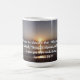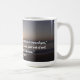 Uma caneca de café com um nascer do sol e o estímulo verso Bíblia de Jeremiah 29:11.